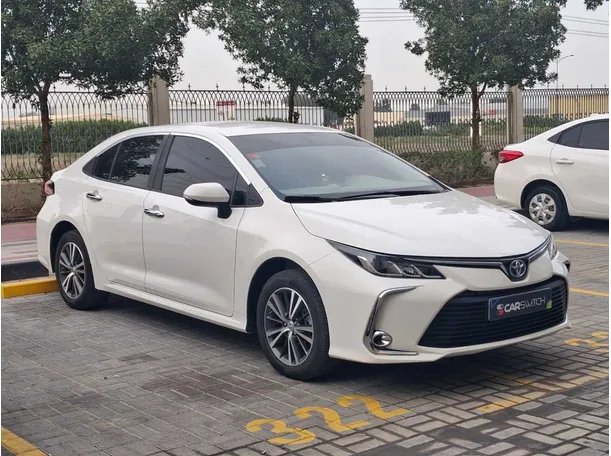 Family-used 2022 Toyota Corolla Hybrid 1.8 GCC for sale, with Toyota warranty and service contract. Achieves 100 km on just 4 liters of fuel. Mileage: 67,400 km. Comes with brand new Yokohama 215/60r16 tires made in Japan. Features include parking sensors, Apple CarPlay, Android Auto, reverse camera...