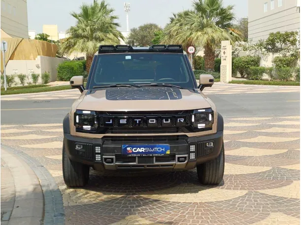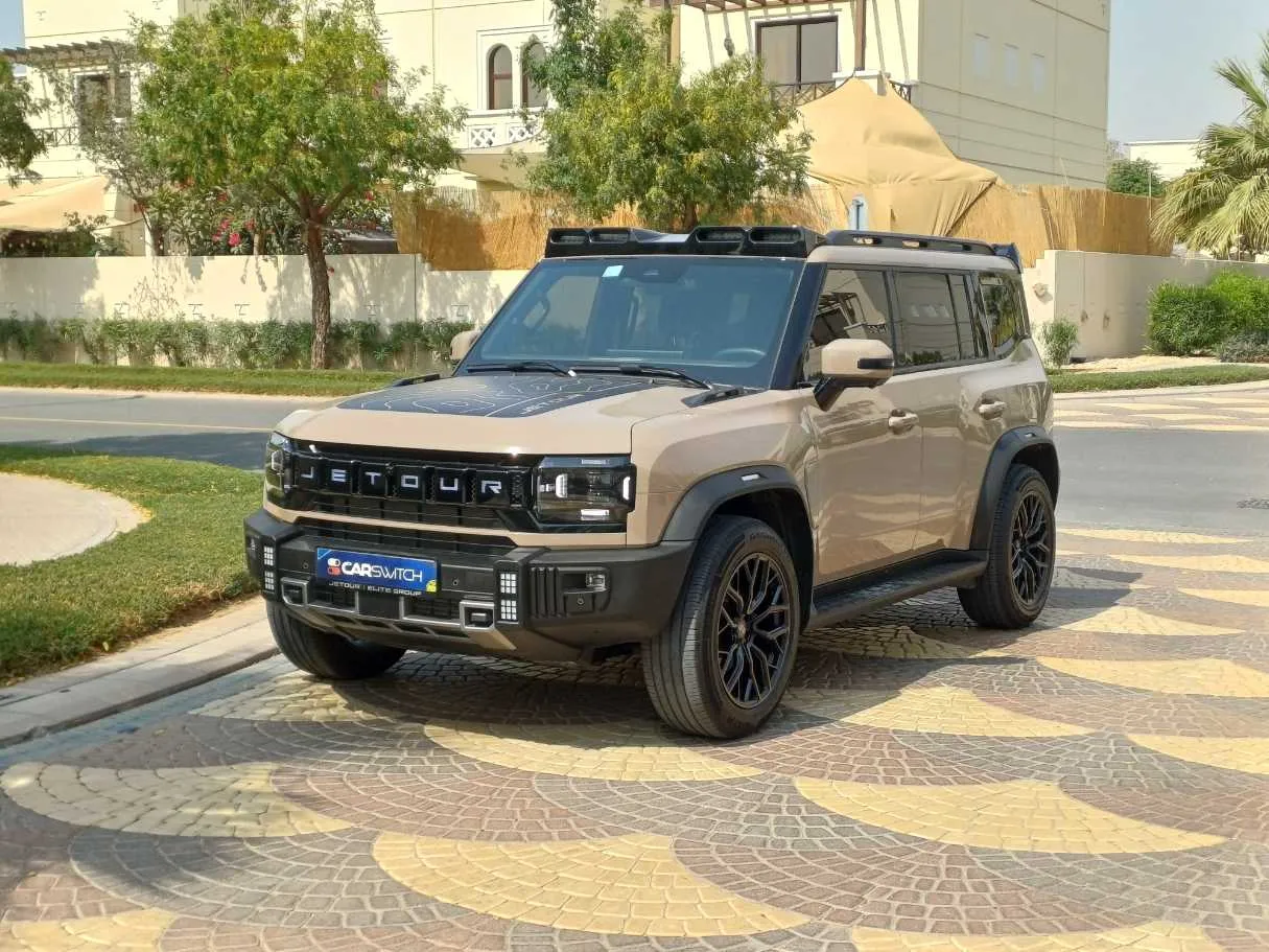 Additional accessories bought and installed from Jetour directly, including roof lights, hood decal, matte black rims, rear spoiler, rubber floor mats, phone mount